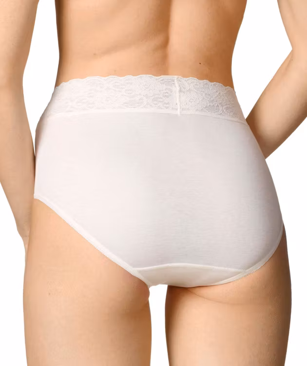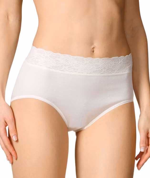 Omtyckt trosa i 100% merceriserad bomull. Mjuk fin spets som inte lämnar någon tydlig markering där trosan slutar.