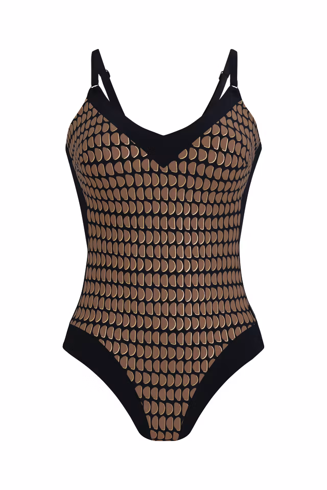 Baddräkten har vadderad bystfoder som ger bra stöd. Reglerbara axelband, djup i ryggen.