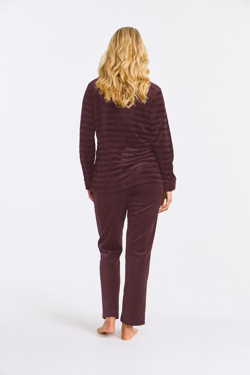 Härlig, mjuk och mysig hemmadress. Jackan har dragkedja fram, sydda muddar i ärmslut och är rak i nederkant.