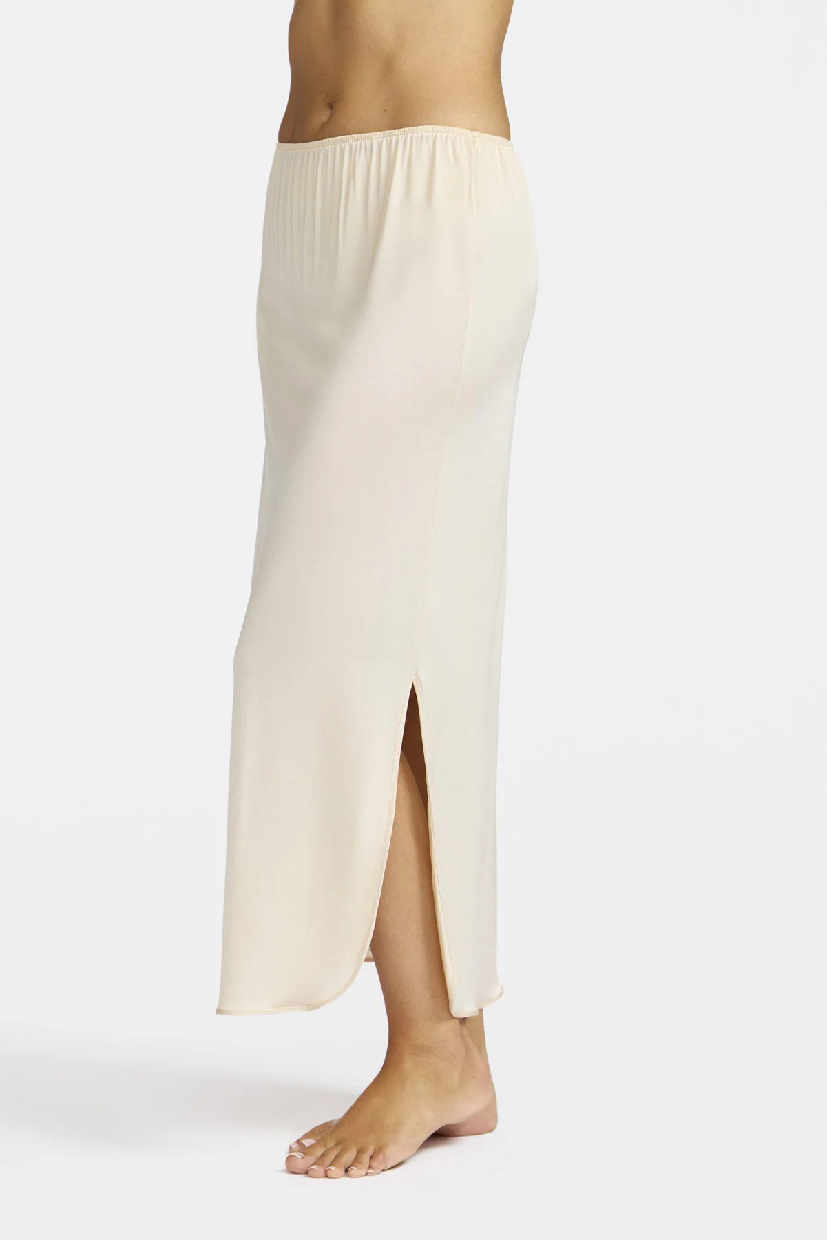 Elegant underkjol i mjuk viskos med en bekväm resår i midjan för en smidig och följsam passform. Underkjolen är 80 cm lång med 35 cm slits mitt bak/sidan. Idealisk för att ge extra volym och komfort till din outfit. Tillverkad i Europa av högkvalitativ Viscose.