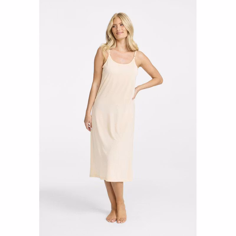 Elegant underklänning i mjuk viskos med reglerbara axelband, perfekt för vardag och fest. Underklänningen är 115 cm lång. Idealisk design som förhindrar din klänning att smita åt, bli statisk eller fastna i strumpbyxorna. Tillverkad i Europa av högkvalitativ Viscose.