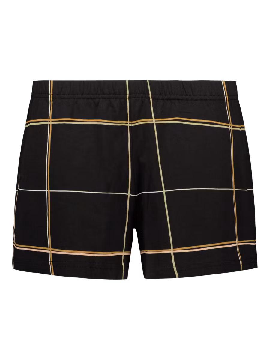 Shorts från Nanso med linjer i rutmönster. Midjan har en bekväm elastisk bandkonstruktion och benen har små sidoslitsar.