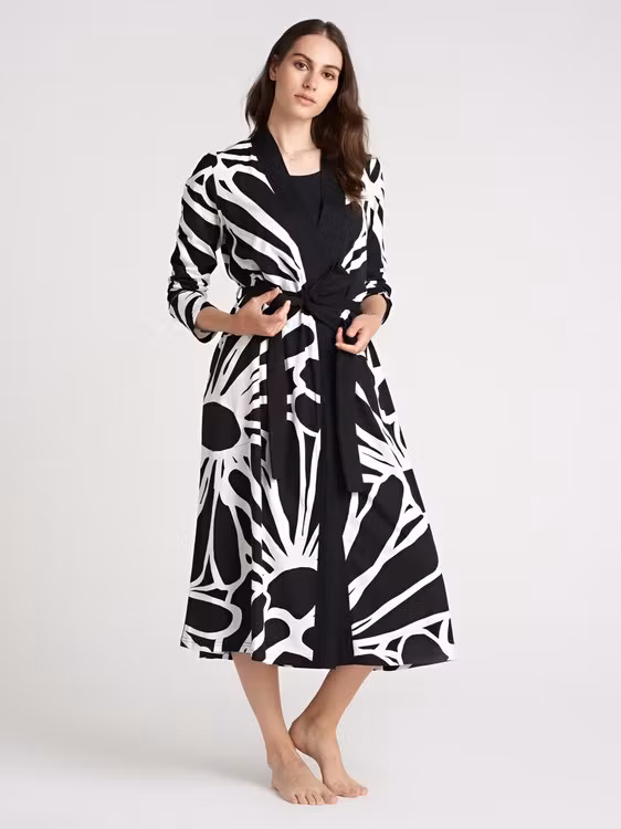 En morgonrock som passar utmärkt som reserock då den inte tar så stor plats. Knyte i midjan. Mjuk och skön kvalitet med stil. 120 cm lång.