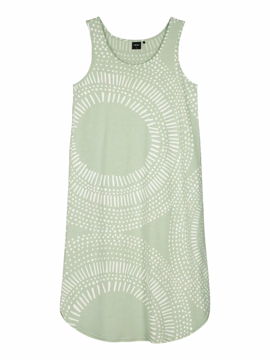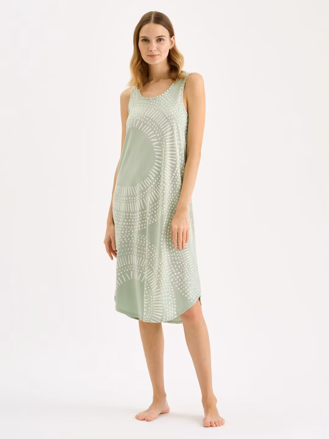 Nattlinne utan ärm och rund halsringning. Rundad i nederkanten. Längden på nattlinnet är cirka 115 cm.