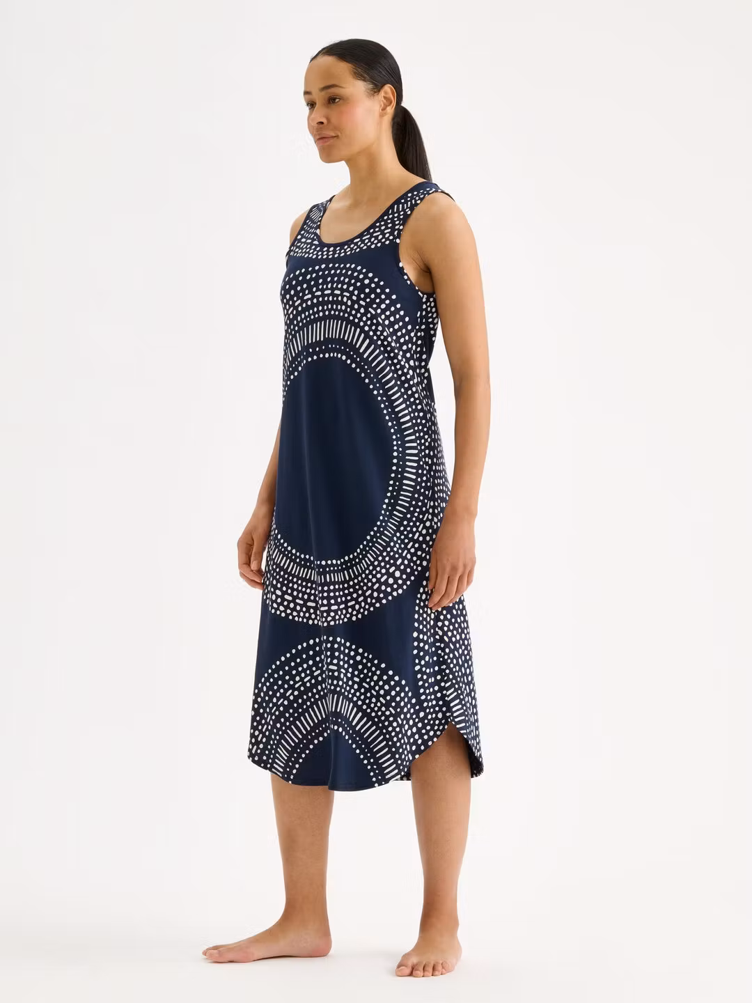 Nattlinne utan ärm och rund halsringning. Rundad i nederkanten. Längden på nattlinnet är cirka 115 cm.