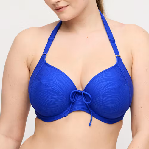 Snygg ovadderad bikini bh med bygel. Dragsko upptill som du kan justera. Enfärgad härligt electric blue. Reglerbara axelband som kan kopplas om till halterneck.
