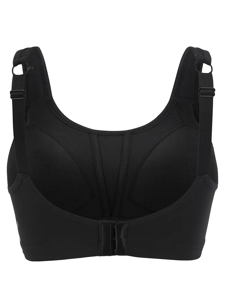 Movement svart vadderad sport-BH med hög belastning och stöd, en stabiliserande frontpanel för att separera och forma bysten. Movement har också en bredare rygg som ger extra stöd för bysten samt mjuka kanter vid armhålan, rejäl och bekväm resårkant med mjuk insida. Vadderade axelband som avlastar axlarna som även kan kopplas ihop i ett kryss (brottarrygg), nickelfria axelbandsringar och spännen.