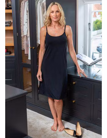 Äntligen en underklänning som når under knäna! Underklänning i ett behagligt material. Underbart skönt tyg i lite tunnare kvalité som gör att underklänningen blir glatt och inte klumpig under kjolen eller klänningen som bärs över.