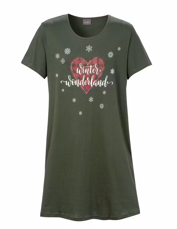 Big-tee rundhalsat nattlinne med vintrigt fint tryck. Nattlinnet är kortärmat och big t-shirt modell.