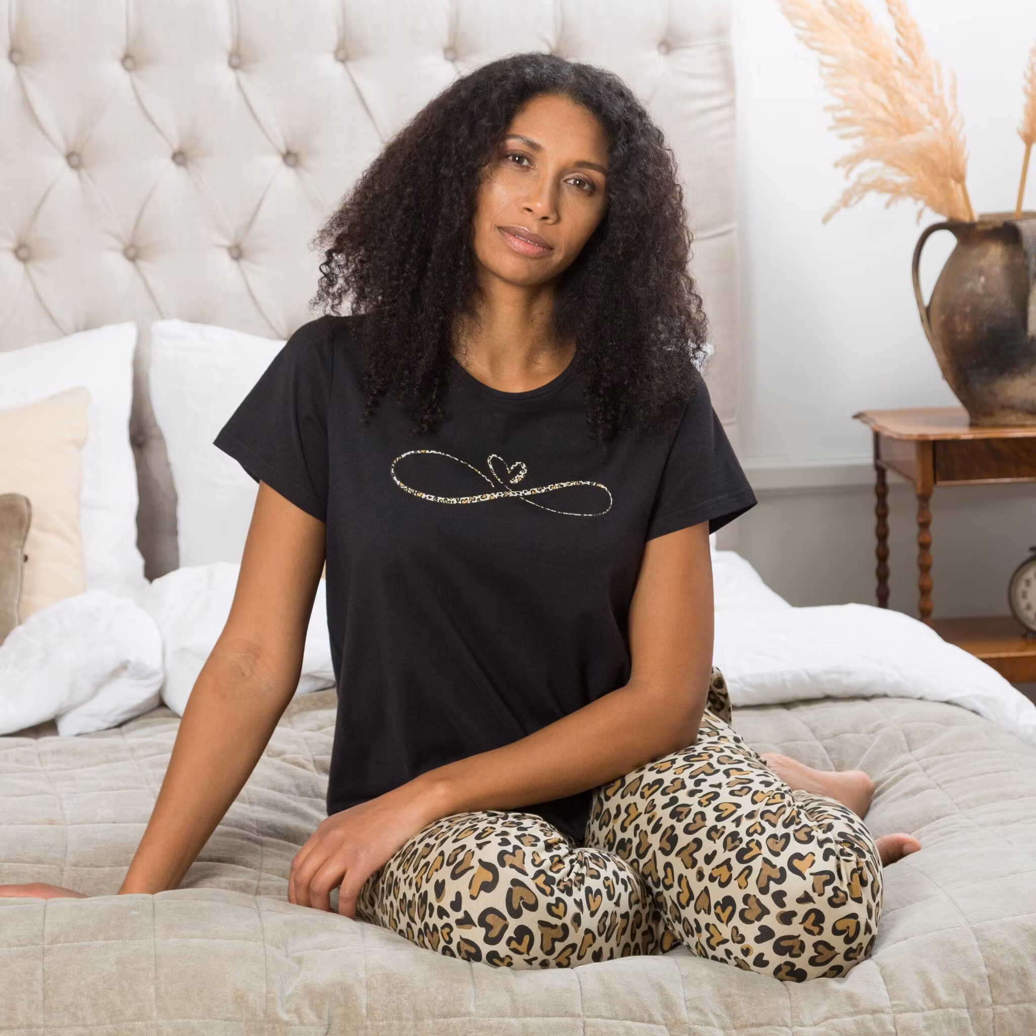 Pyjamas i bomullstrikå. Kortärmad överdel med rundad halsringning och ett enkelt tryck. Längd 63 cm i stl M.